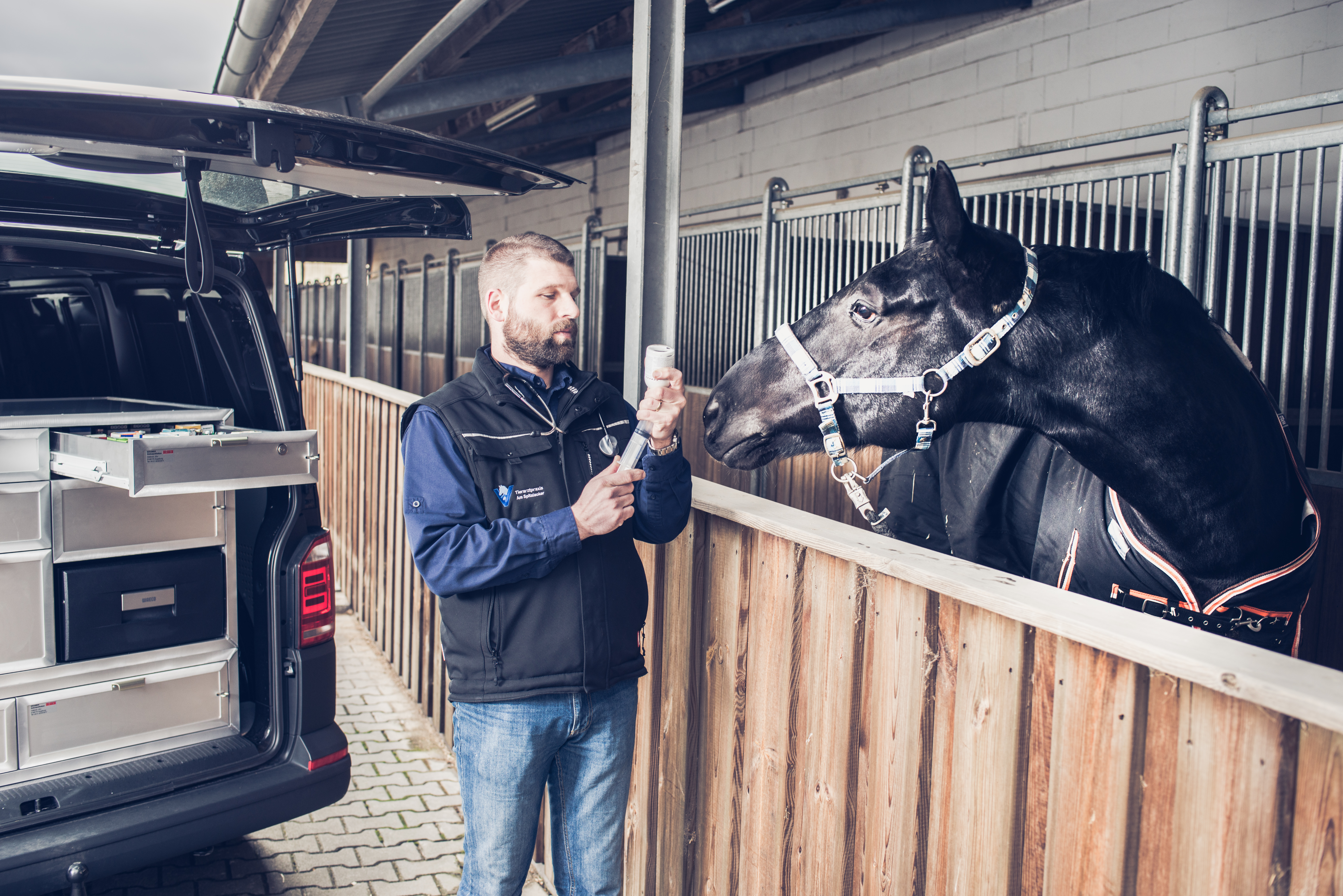 In der Pferdepraxis erwartet Dich eine tolle Mischung aus Fahrpraxis - jede:r Tierarzt/Tierärztin hat ein eigenes, vollausgestattetes Praxisfahrzeug als mobile Tierarztpraxis - mit der Option auf stationäre und ambulante Behandlungen sowie Operationen auf Klinikniveau in unseren modernen Praxisräumen. Hier findest du einen geräumigen Untersuchungsraum, einen Pferde-OP mit gepolsterter Narkosebox und umfangreichem Narkosemonitoring, eine Station mit videoüberwachtem Intensivbereich, eine Bewegungshalle, sowie eine Inhalationsbox.
