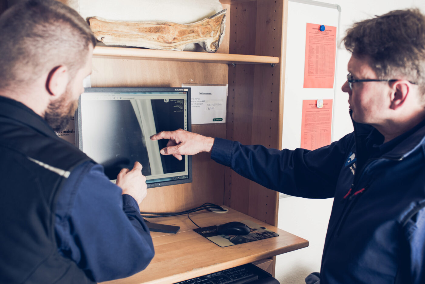 Viele Probleme können wir mit den vielfältigen diagnostischen und therapeutischen Möglichkeiten in unserer Praxis lösen. Dennoch kennen wir unsere Grenzen und wenn wir nicht selbst weiterhelfen können, profitieren wir von unseren sehr guten Beziehungen zu spezialisierten Tierärzten und Tierärztinnen sowie Tierkliniken aller Fachrichtungen, Schmieden, Sattler:innen, Medizintechniker:innen und Trainer:innen.